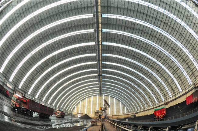 堆场料场封闭式主体结构为新型的钢耒阳网架结构,维修结构为耒阳钢结构耒阳不锈钢板和纤维增强塑料灯具,其外形以耒阳网架式和平板为主,连接柱耒阳施工自由,设置喷雾自动喷水系统,从而可以实现棚内所有物料的覆盖,减少物料在运输过程中的损耗,起到防尘的作用,减少工厂关闭后的二氧化硫排放量,50mg/m3颗粒排放量小于10mg/m3,非常适合低能耗。低闭库自动感应反应对库存轮胎进行清洁,确保轮胎不受道路污染;封闭的储存区可从源头控制粉尘污染,控制无序排放。